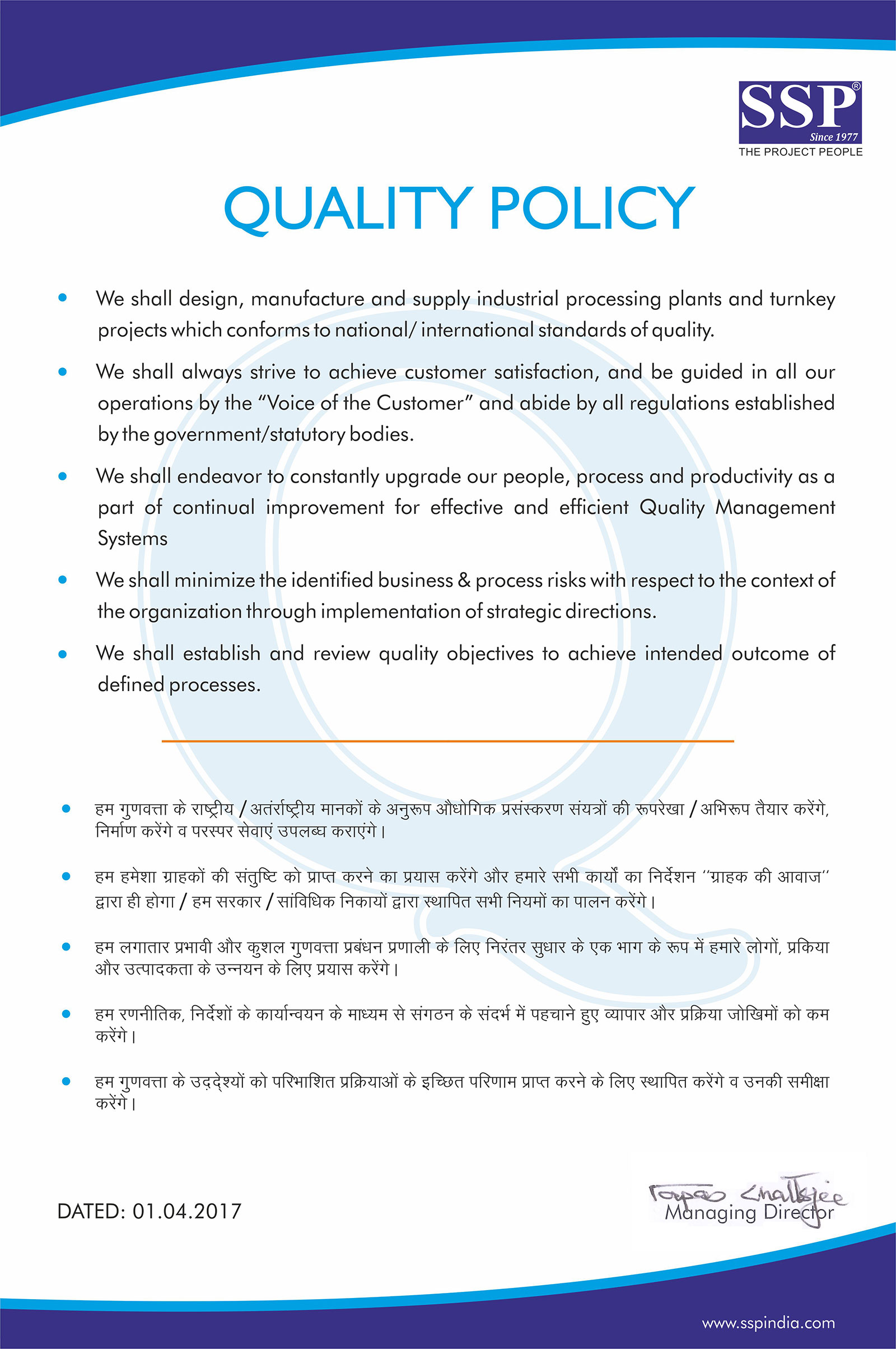 - SSP is an ISO 9001:2015 Certified Company